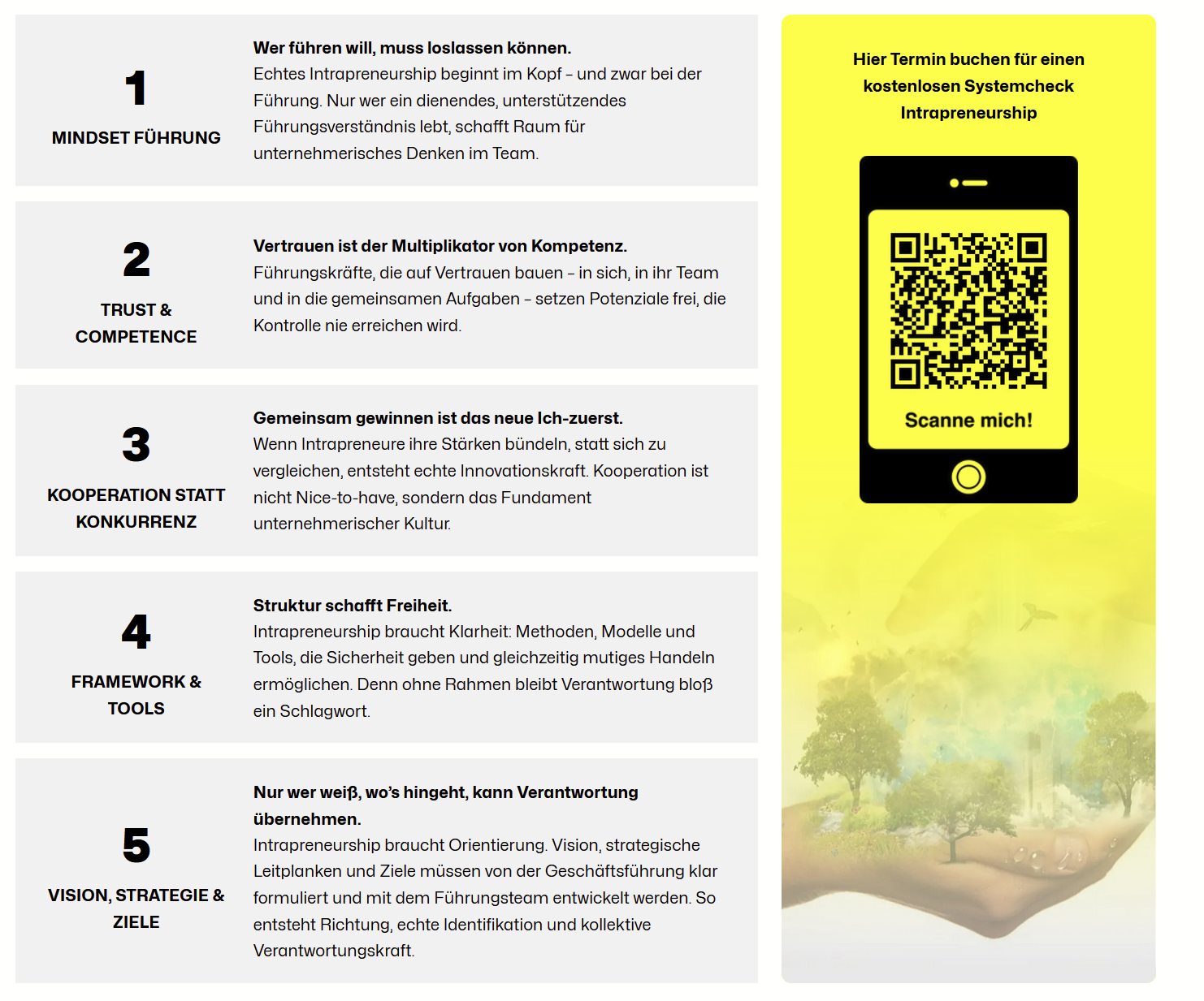 Intrapreneurship etabliert einen Führungsansatz, der auf Vertrauen, Verantwortung und unternehmerisches Denken setzt. Wir helfen Ihnen bei der Umsetzung.